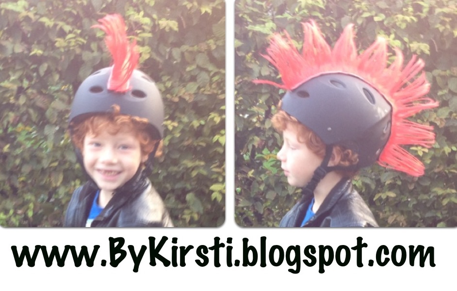 Noah har tidligere set en hjelm med 'indbygget' hanekam men mor her synes nu det er lidt smartere med den her, for skulle det ske han på et tidspunkt bliver træt af at lege punker, så kan hanekammen tages af uden at man skal ud og købe en helt ny hjelm, og der er trods alt lidt forskel på 99kr for en hanekam og 250-300kr for en ny hjelm!